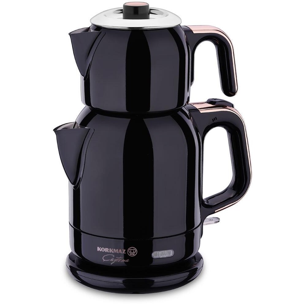 چایساز کرکماز مدل دمتز (مشکی/استیل مات) ا Korkmaz Demtez Satin/Black Electric Teapot