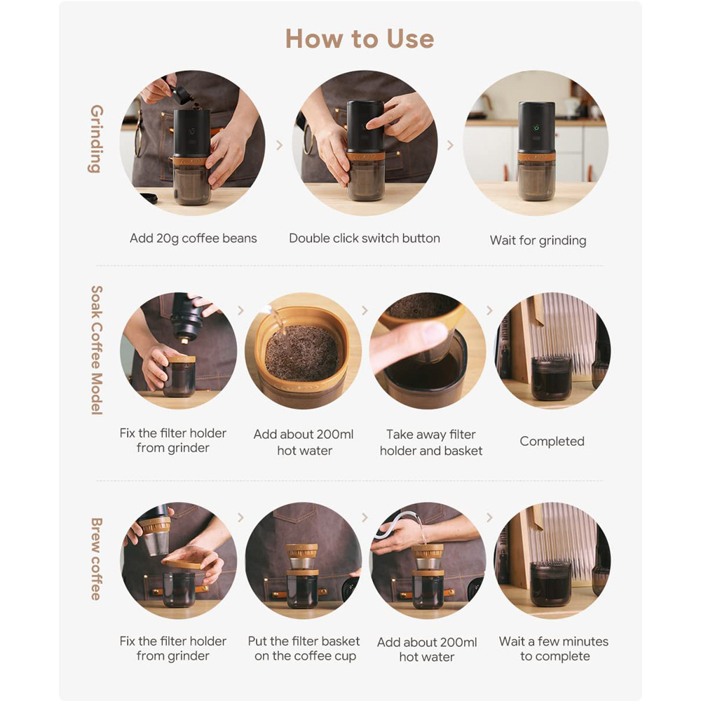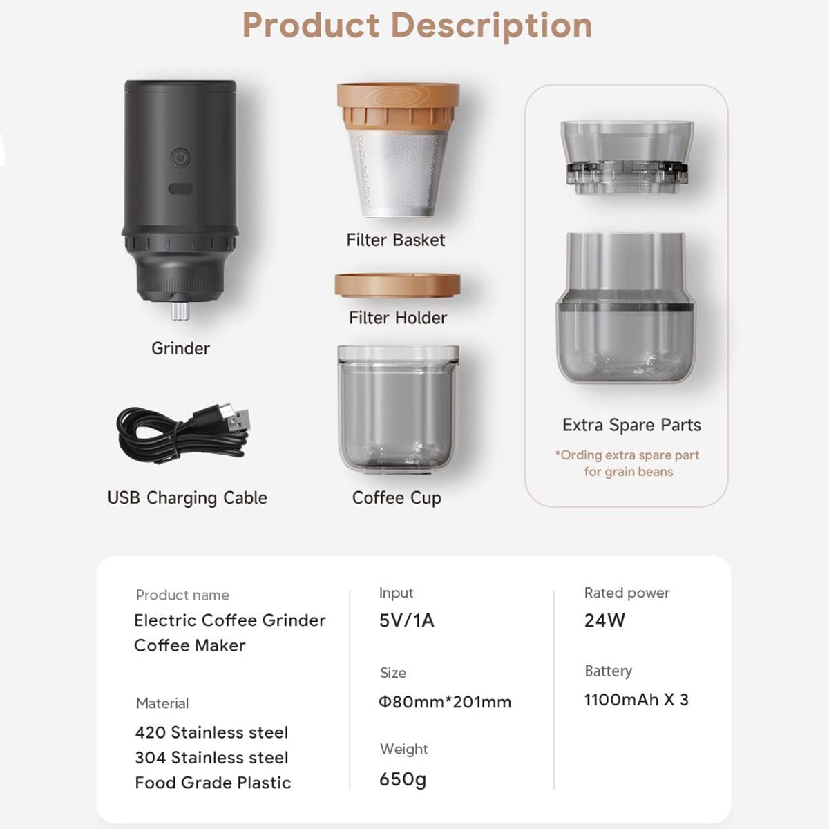 آسیاب و قهوهساز ایکافیلاس قابلحمل icafilas ا iCafilas Electric Coffee Grinder All in One Portable Coffee Maker