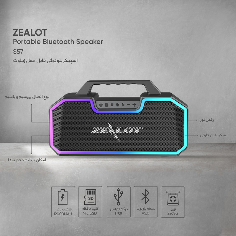 اسپیکر بلوتوث زیلوت مدل Zealot S57 ا Zealot S57 Bluetooth Portable Speaker