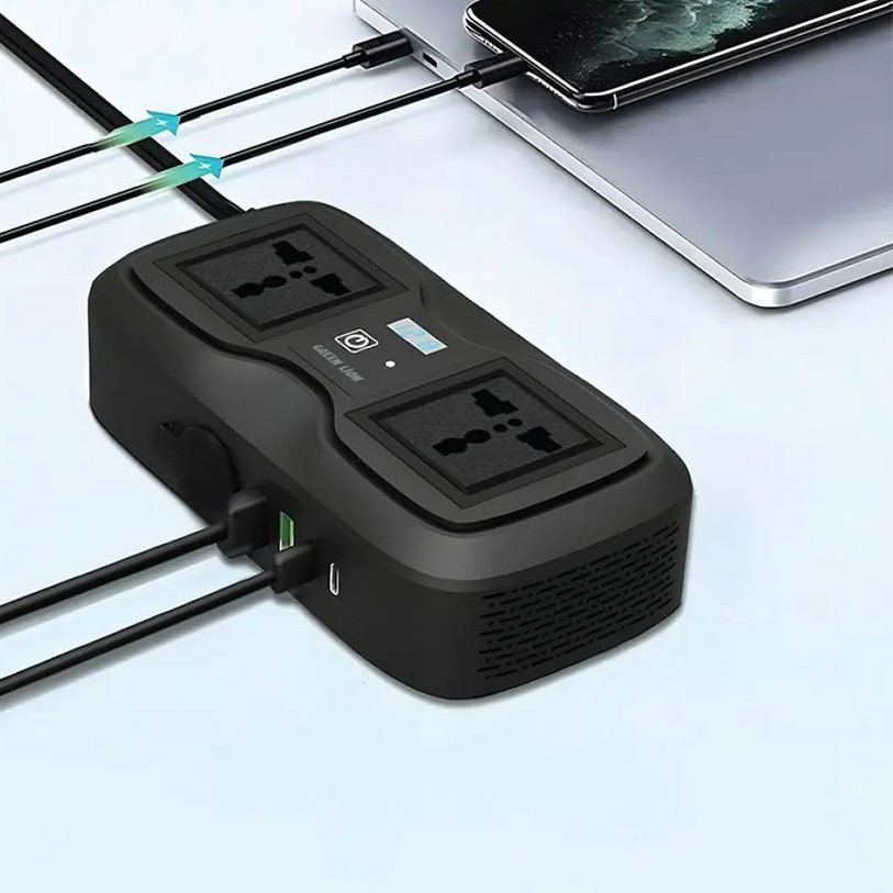 تعداد درگاه های ارتباطی: 6 عدد، 2 سوکت برق جهانی (universal)، دو عدد پورت USB-A (5V/3A، 9V/2A، 12V/1.5A و QC 18 وات) ، دو عدد پورت USB-C (5V/3A، 9V/2.22A، 12V/1.67A و PD 20 وات)