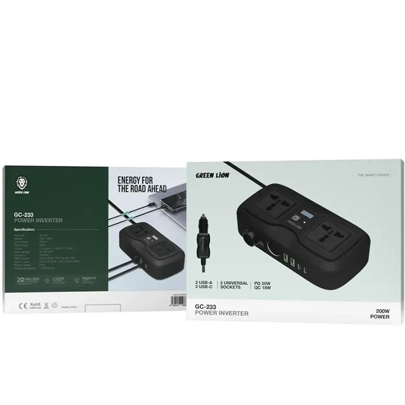 اینورتر فندکی خودرو گرین لاین توان 200 واتGreen Lion GC-233 Power Inverter 200W