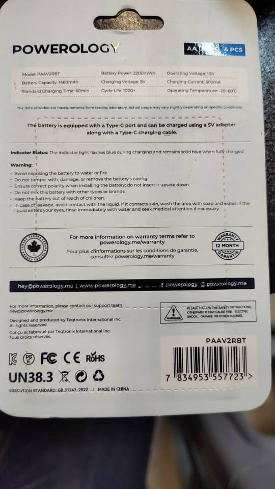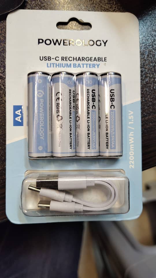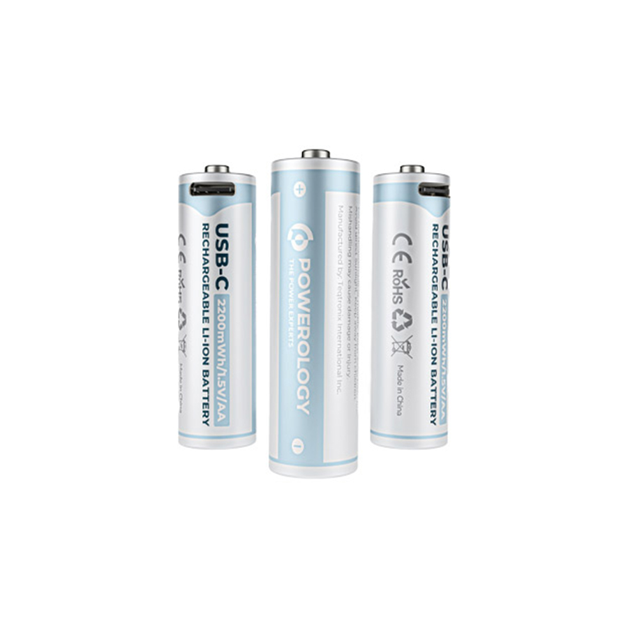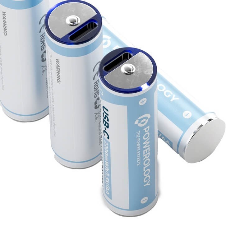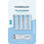 باتری قلمی شارژی پاورولوژی پک چهار تایی Powerology Type-C Rechargeable