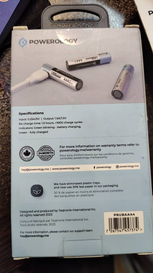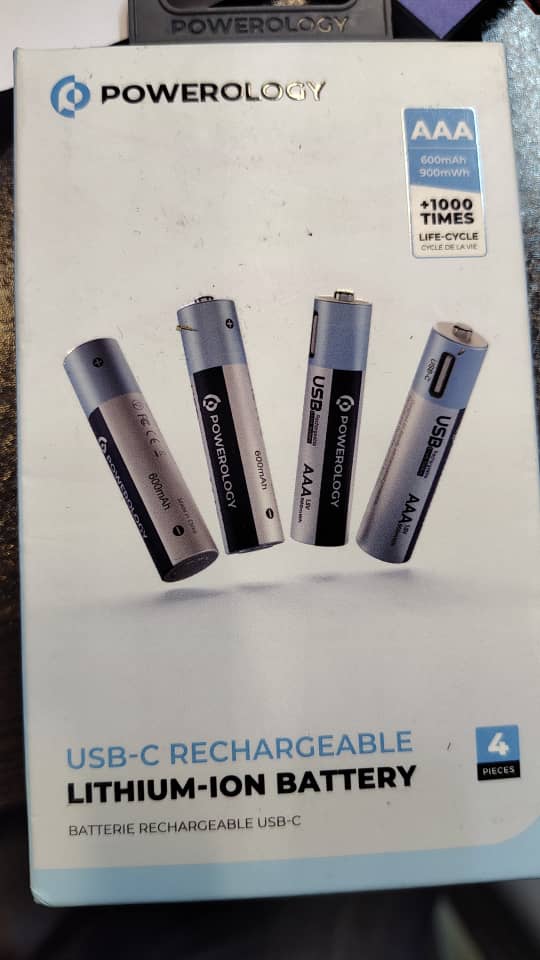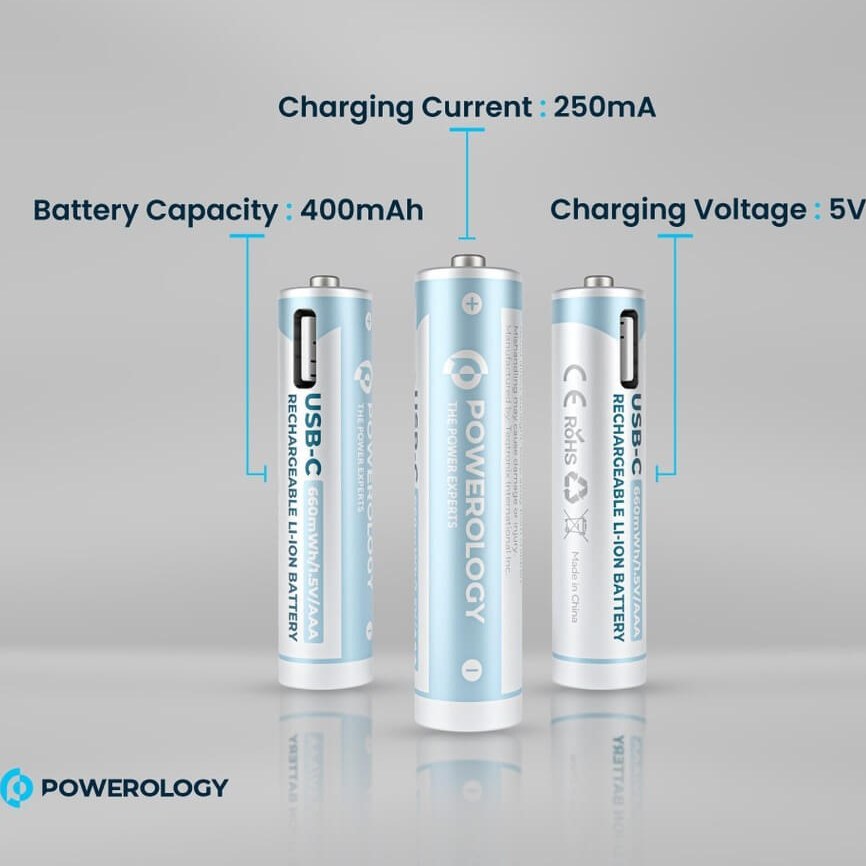 باتری نیم قلمی شارژی پاورولوژی پک چهار تایی Powerology Type-C Rechargeable