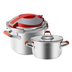 دارای دو دیگ 4 و 6 لیتری، درب زودپز و درب پیرکس