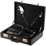 سرویس ۸۶ پارچه مشتمل بر: ۱۲ عدد قاشق غذاخوری – ۱۲ عدد چنگال غذاخوری – ۱۲ عدد کارد غذاخوری – ۱۲ عدد قاشق چایخوری – ۱۲ عدد چنگال میوهخوری – ۱۲ عدد قاشق مربا خوری -۲ عدد کفگیر -۲ عدد چنگال گوشت -۲ عدد قاشق خورشت – ۱ عدد ملاقه گوشت – ۱ عدد قاشق سرو سالاد – ۱ عدد چنگال سرو سالاد – ۱ عدد کاردک سرو کیک – ۱ عدد انبر شیرینی – ۱ عدد قاشق شکر – ۱ عدد قاشق سوپخوری – ۱ عدد ملاقه سوپ