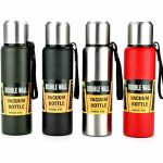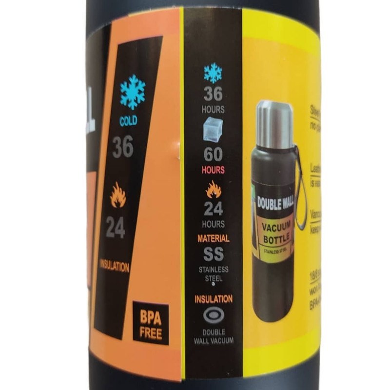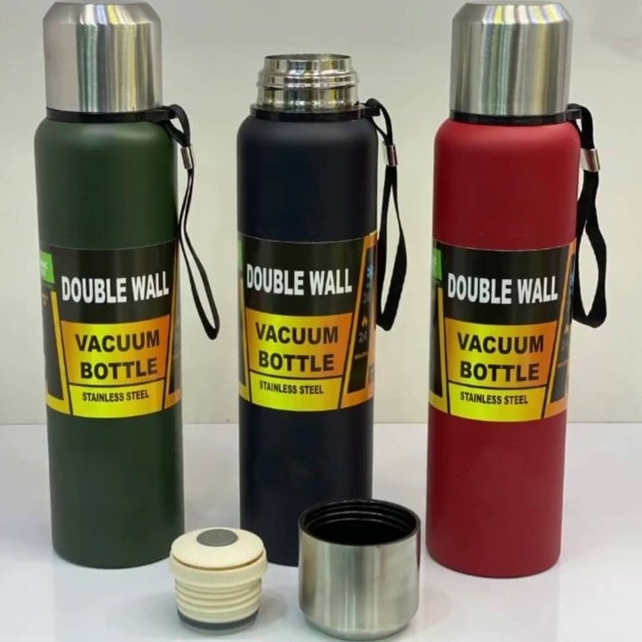 1 لیتری با جنس استیل دو جداره داره و دارای بند نگهدارنده
