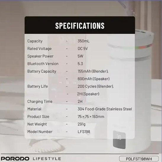 ماگ همزن مغناطیسی و اسپیکر پرودو Porodo Fluxmix Stirring Cup with Speaker