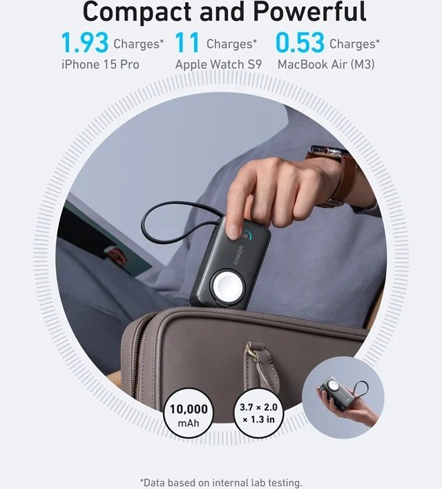 پاوربانک ۱۰۰۰۰میلی آمپر نسل پنجم انکر Anker MagGo Power Bank for Apple Watch 30W مدل A1657
