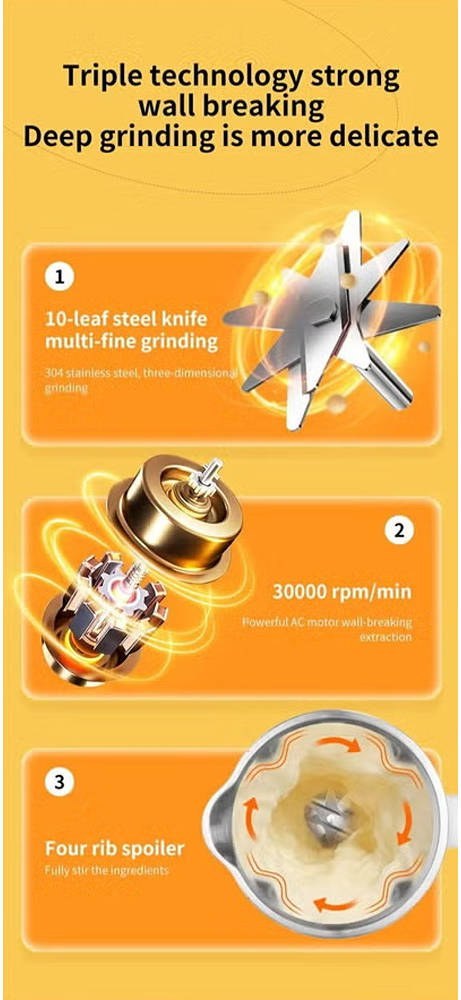 • سایر ویژگی‌ها: صدای کم, امکان تمیز کردن خودکار فقط با اضافه کردن مقداری آب, امکان جدا کردن اجزا و شستشو آنها, امکان خورد کردن نخود خشک در 25 دقیقه, بدون هیچگونه ماده شیمیایی در دستگاه, طراحی پد ضد لغزش در پایین دستگاه برای جلوگیری لغزش, قابلیت استفاده به عنوان کتری